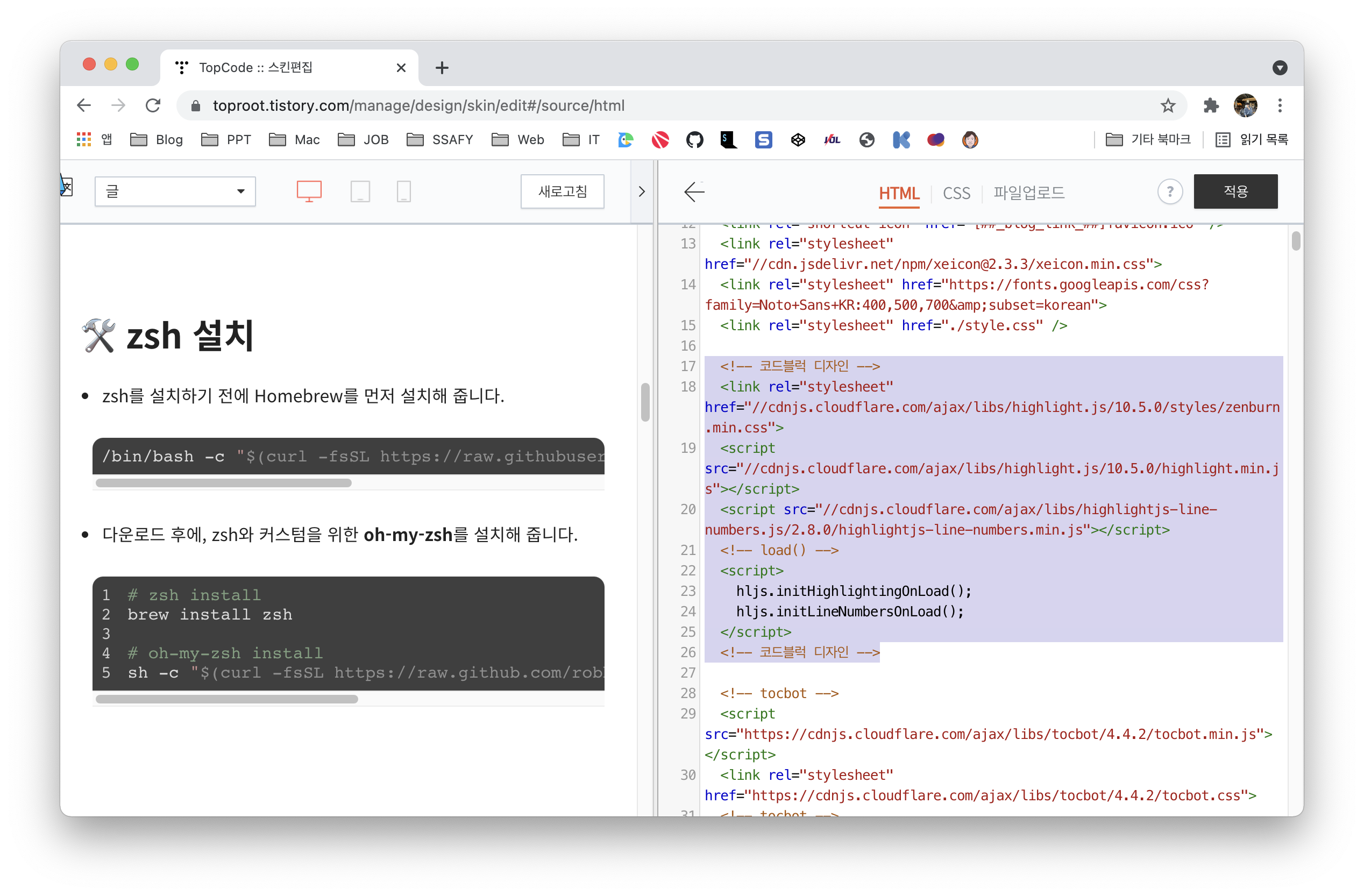 [TISTORY/Code Block] 티스토리 코드블럭 하이라이트(highlight.js) 테마 설정